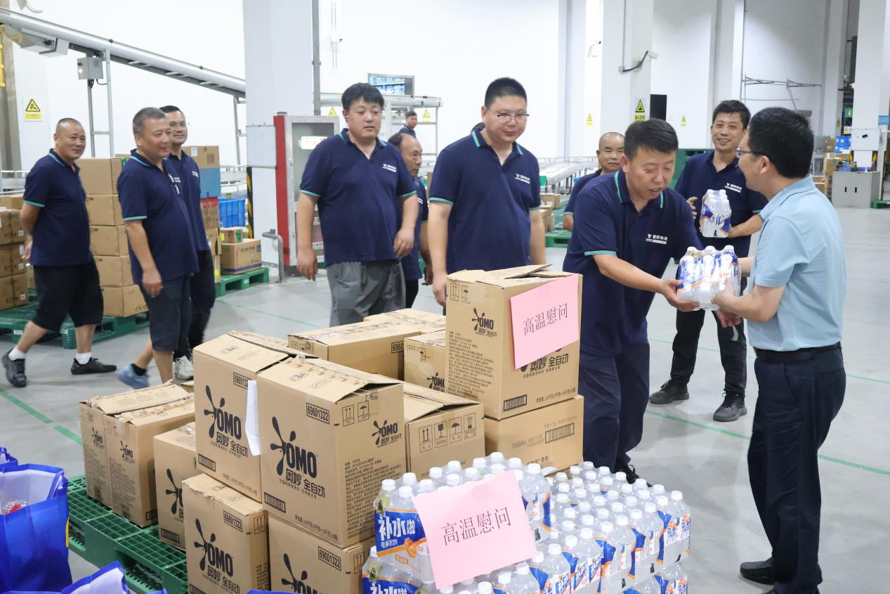 汤斌主席一行来到公司物流中心仓库工作现场,为持续奋战的一线职工送上藿香正气口服液、电解质水等防暑降温慰问品和“清凉”关怀。他详细询问了一线及外勤职工的工作情况,对他们不畏酷暑、坚守岗位的精神表示充分的肯定,并叮嘱大家做好个人防护,合理调配工作时间,严防高温中暑,确保作业安全。
